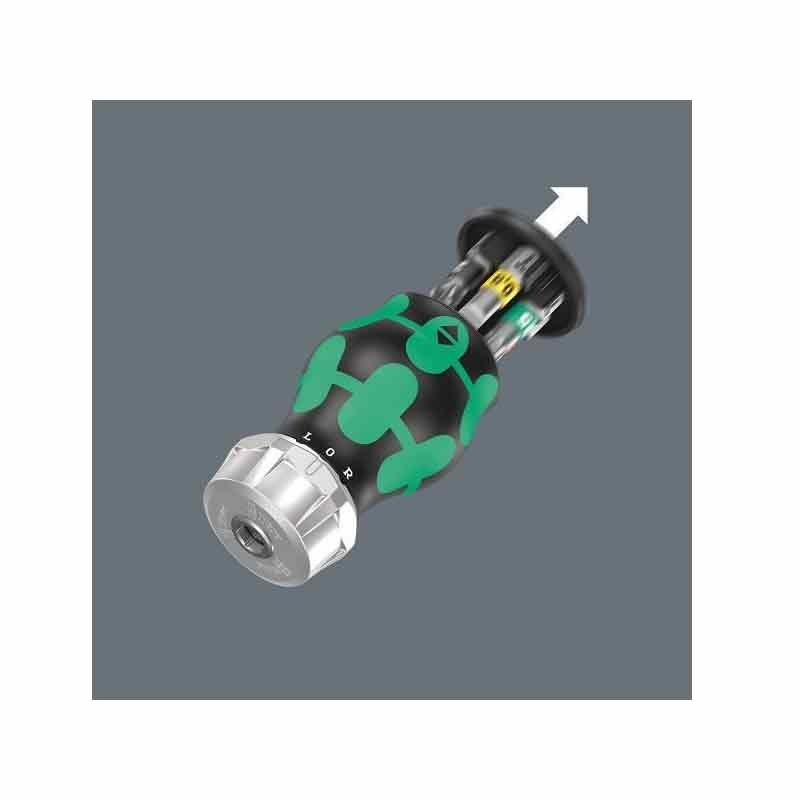 Sistema de alça/lâmina intercambiável para substituição rápida da lâmina necessária. Cabo de chave de fenda Stubby especialmente pequeno com lâmina curta para áreas de difícil acesso. Com função de catraca e dentes finos para um baixo ângulo de retorno. Anel reversível fácil de operar (direita, apertada, esquerda). Adequado para a montagem de brocas com hexágono de 1/4″ conforme DIN ISO 1173-C 6.3 e conexão Wera série 1. Inclui brocas BiTorsion de alta qualidade que evitam a torção da ponta da broca sob altas cargas. Isso aumenta significativamente a vida útil do produto. O forte ímã permanente na montagem da broca garante uma fixação segura da broca. O cabo Kraftform de 2 componentes com a combinação prática de zonas duras e macias permite uma pegada firme e um trabalho preciso.