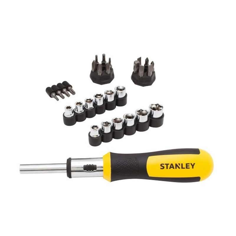 Para todas as suas necessidades diárias de reparo e fixação, o conjunto de chaves de fenda de catraca multibit de 29 peças ajudará você a realizar o trabalho. Este conjunto inclui 12 soquetes métricos e SAE, 2 bits hexagonais, um conjunto de 15 bits padrão, Philips® e Torx®, além de uma chave de fenda projetada ergonomicamente.